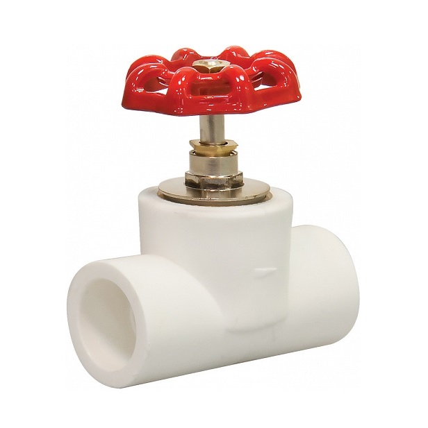 Вентиль ПП - корпусной фитинг с механизмом регулирования шпиндельного типа расположенного под углом 90° к направлению потока, позволяет плавно регулировать его в системе. Вращение маховика против часовой стрелки открывает вентиль, а по часовой закрывает.