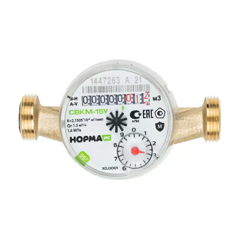 Счетчики воды Норма СВКМ универсальные предназначены для установки в жилых помещениях. Оснащены надежным измерительным механизмом, исключающим срывы при пограничных расходах воды. Крыльчатка из полипропилена (PP) выдерживает высокую температуру до +95°С и значительные нагрузки.